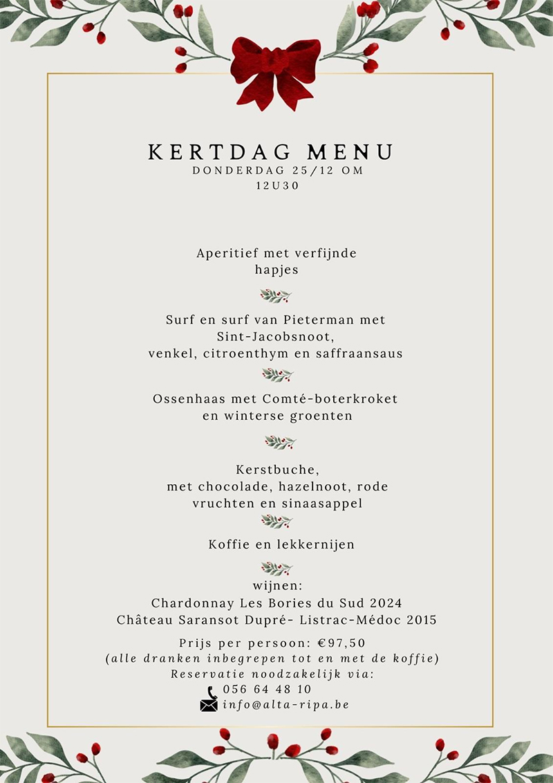 Inscrivez-vous dès aujourd’hui au 056 644810 ou par e-mail  info@alta-ripa.be.